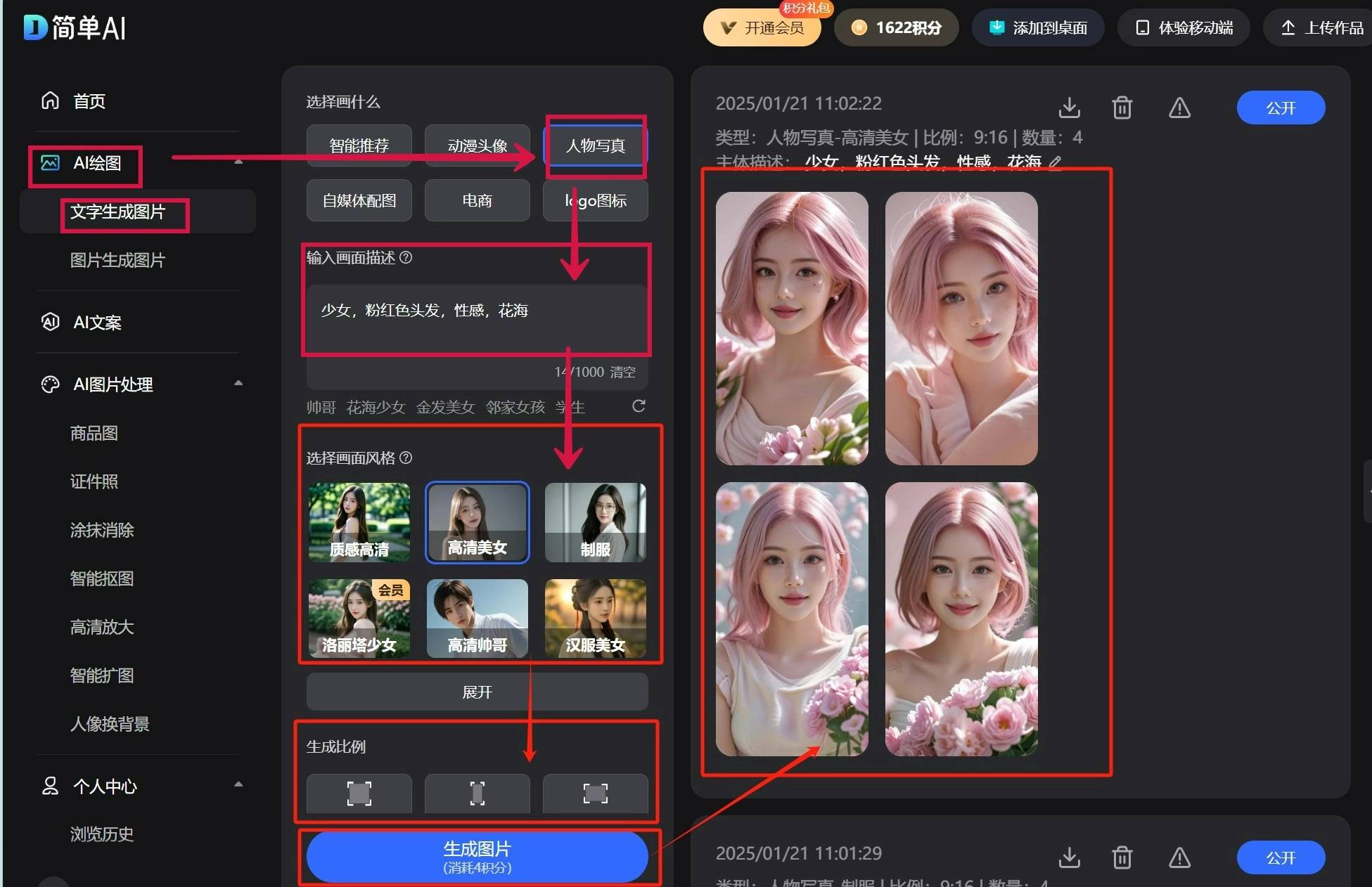 如:少女,AI生成的模特,简曲让人移不开眼!让你轻松具有春天最美的4件衣服!白衬衫绝对是穿搭界的百搭神器。点击下载图标,灵感满满,生成比例及生成数量,卡其色西拆绝对是春季穿搭的爆款。或者正在微信小法式搜刮【简单AI】。让你的春天穿搭更上一个台阶!春天来了!正在选择画什么模块选择人物写实第二步:你能够正在【输入画面描述】模块,随便一张都能当壁纸!还能三步写出爆款文章,无论是叠穿风衣仍是搭配牛仔裤,